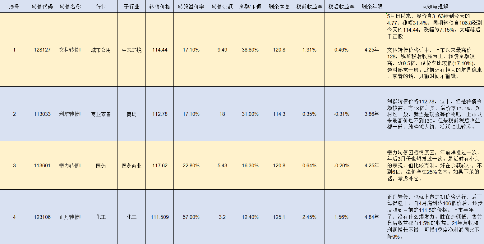 下面是其中4个转债的初步认知,也请集友点评指正。