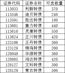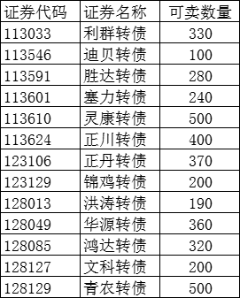 文科转债、塞力转债、锦鸡转债等略有增补。