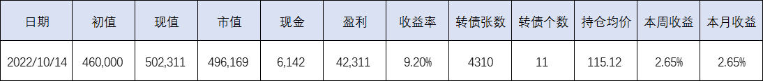 2022/10/21 本周净值几乎没有变化,唯一动的是 胜达转债,走了一些,还留了一点准备格局,可惜还是半途而返。后面等机会说再见。
