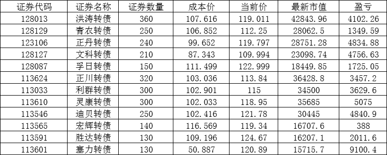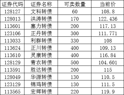 这两天 首次建仓 锦鸡转债 100张均价114,华源转债100张均价113。