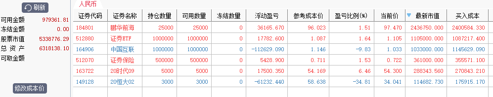 1、昨天收盘清掉了证保ETF,今天清仓证券ETF;