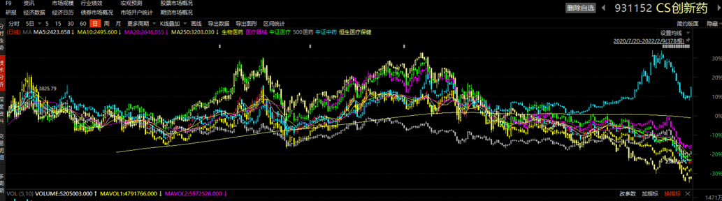一个可能的原因,就是很多医疗公司都是在港股上市的,尤其是细分领域的比如CRO等,A股也有,但港股美股也分散了很多。但我们还有:HSSSHID 恒生沪深港创新药精选50指数,也有沪港深500等。所以这只能占一部分原因。