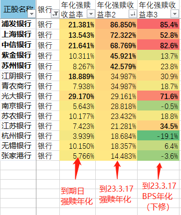 第1列年化就是 到期时高于到期赎回价的年化收益率,强赎触发价/近期股价-1