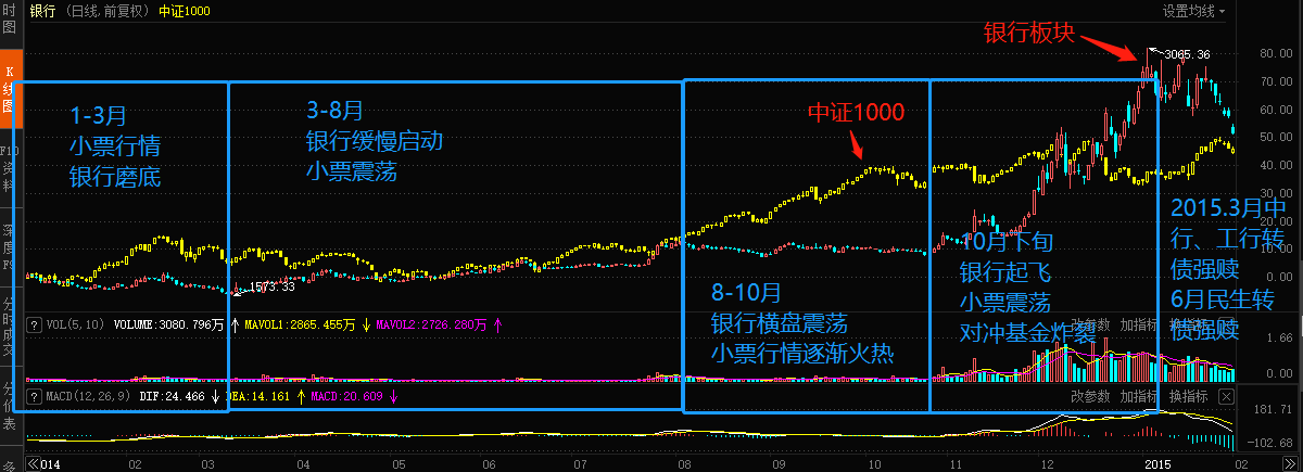 这样是不会会重演2014年小票和银行板块轮动行情(下图)?