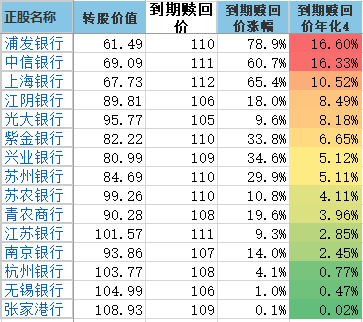 好图。建议楼主加一列,到期时高于到期赎回价的年化收益率。