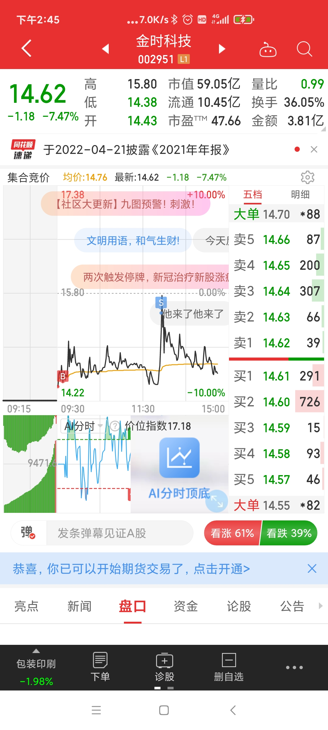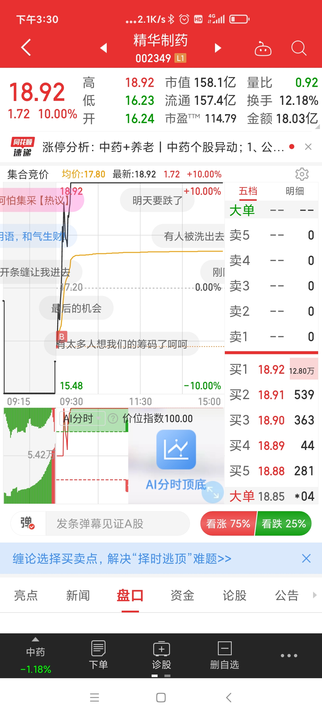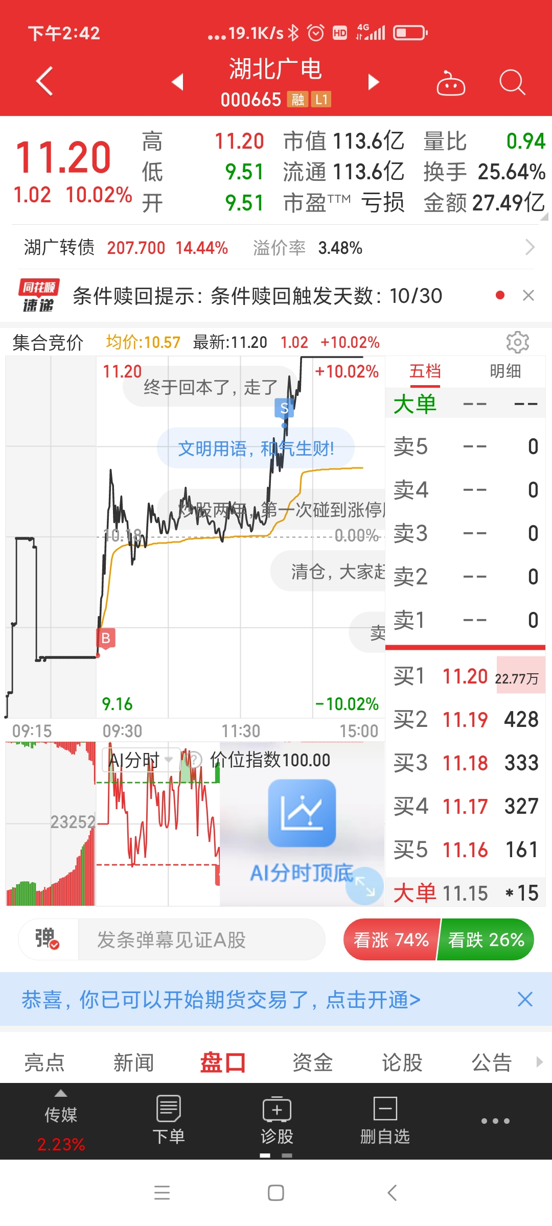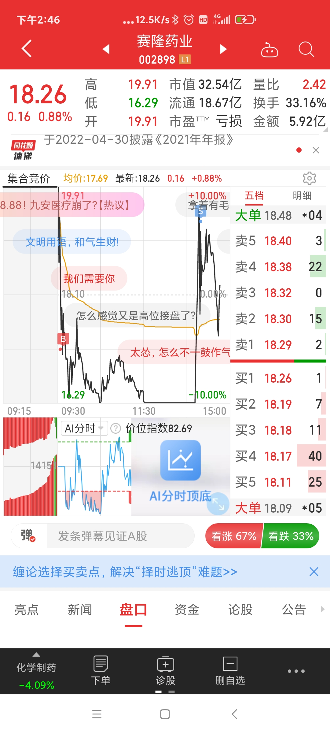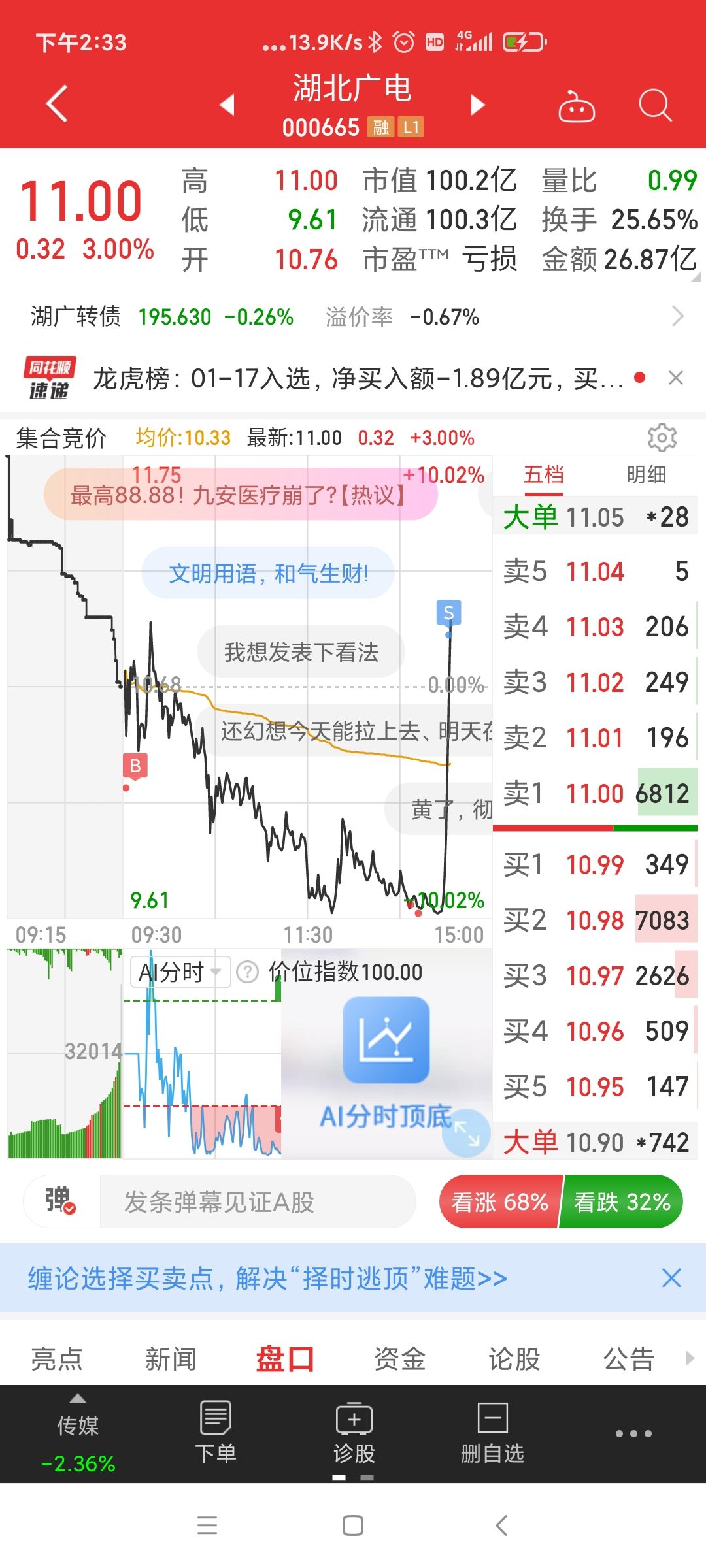 说一下卖九安的逻辑,主要是昨天晚上出了利好,我对妖股出利好一般的处理,如果高开太多的话,肯定会先把它出掉。早上刚开始九安是十个点的高开,然后慢慢的降到。八个,六个,这时心里更加坚定了卖出,因为主力会利用利好出货。没想到九安他不是妖股,他是妖王,