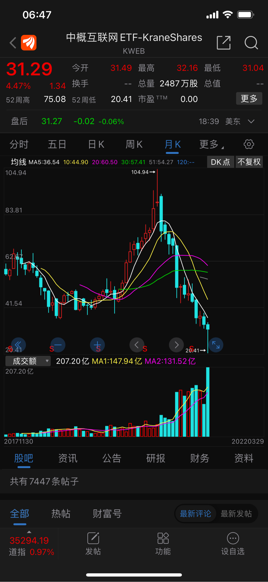 中概总投资31.5,占总仓位18%,最近回血一部分,还亏损20%左右。对后面持乐观态度,后面如果跌破前面低点,会加仓2%,若上涨,短线网格会减持一部分,长线仓位不会低于10%,就这样了。跟着计划走吧。
