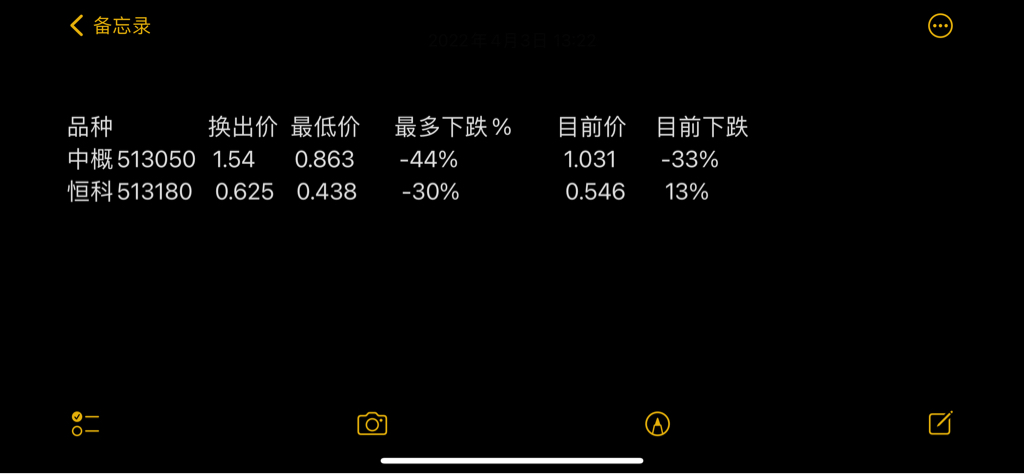 之前仓位大部分在中概513050,后来看中概溢价有5%,想吃个溢价,就换到恒生科技513180,结果恒生科技跌的更多,中概溢价更大了。这一项多亏了5%左右。