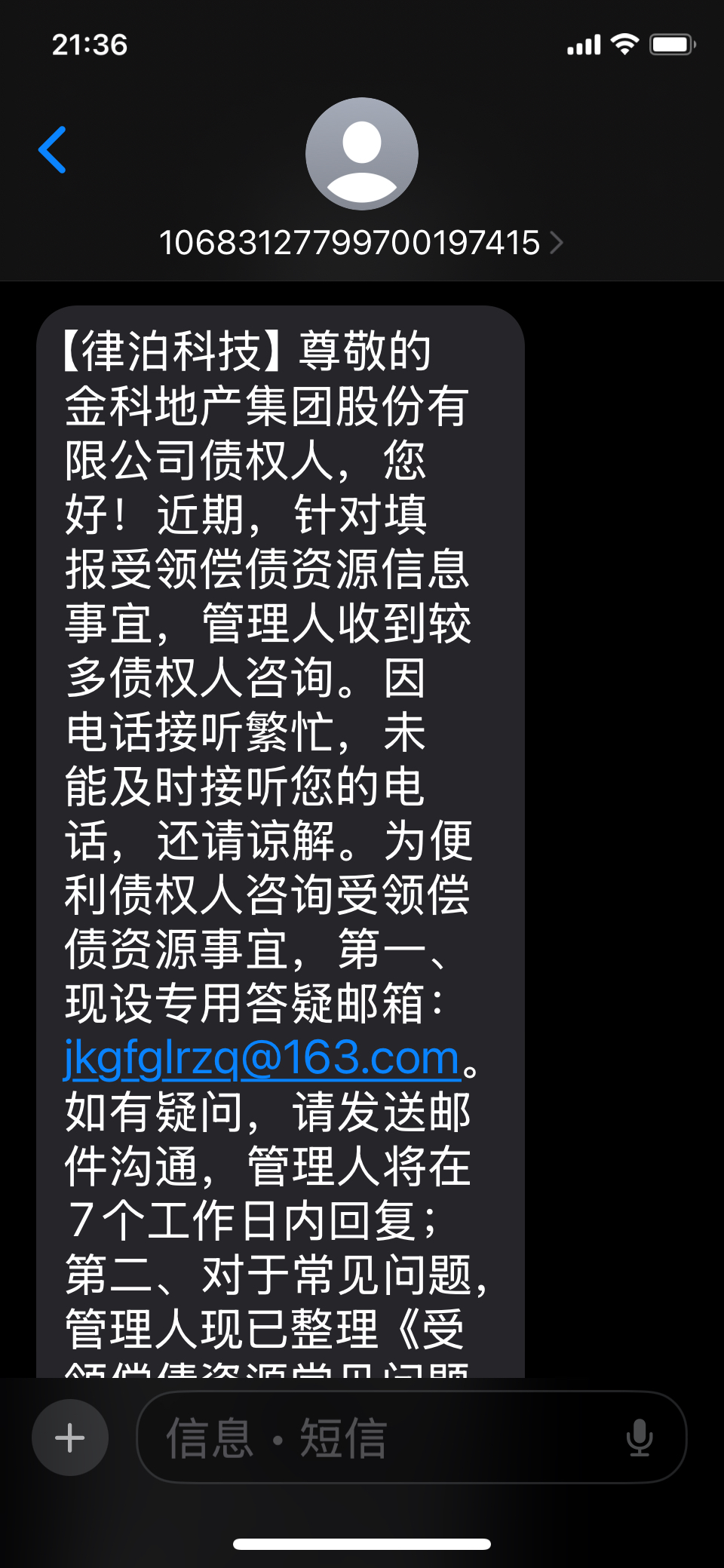 【律泊科技】尊敬的金科地产集团的股份有限公司债权人: