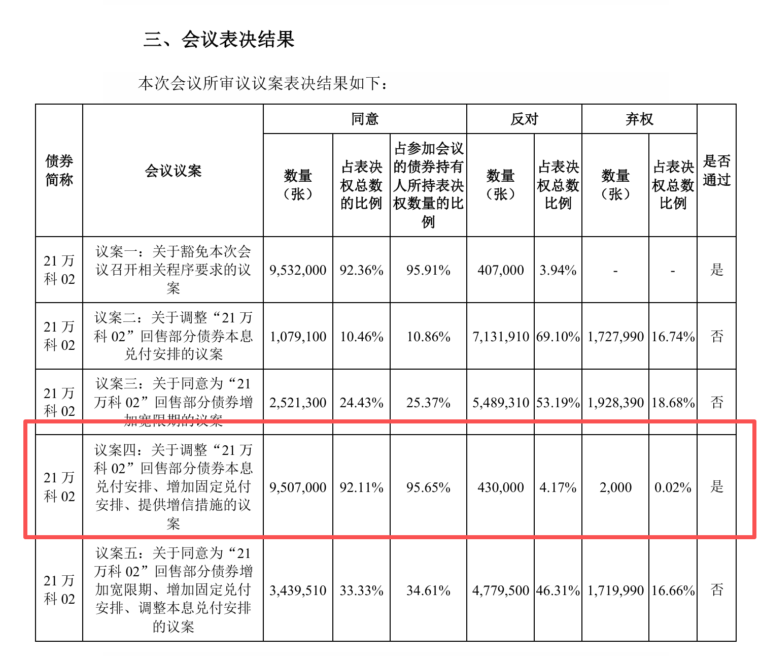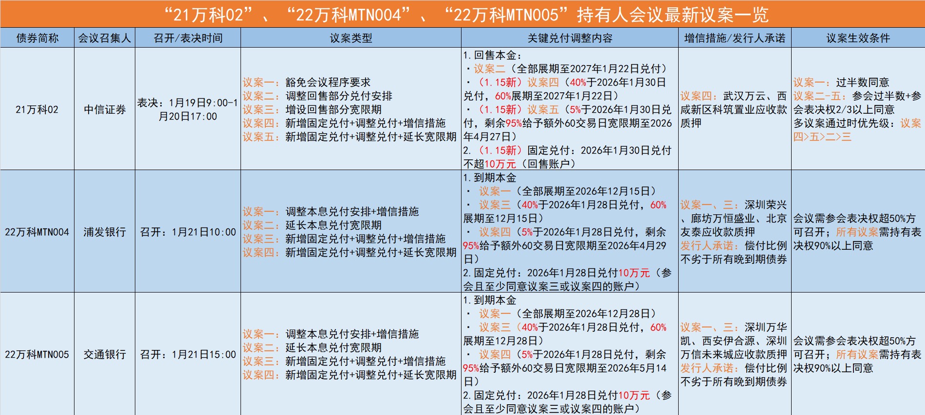万科最新的展期议案:10万元小额,40%支付剩余展期1年,项目增信;