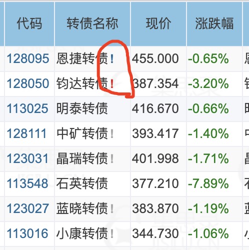 转债名称旁边的“叹号”颜色也会对应给予强赎提示,请使用的时候关注