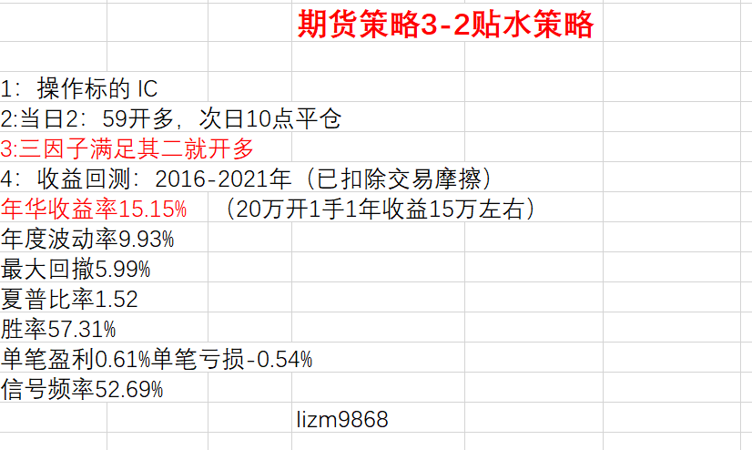 您说的策略我之前做过,贴水是3个因子之一。逻辑也有----隔夜风险获取收益。正收益。