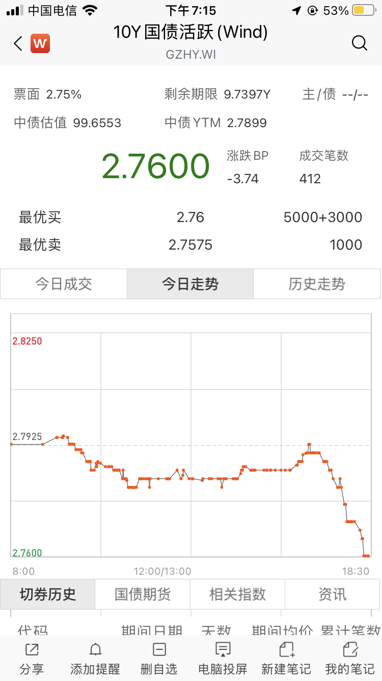 银行利率债和股市是什么关系,下降同步?一般是有一定相关性。昨天是因为演讲内容被泄露了所导致的尾盘利率大幅下行。现在债券价格已经隐含了官方默认gdp目标被下调这一事件,但股票似乎还没有。今天的股票也比我预期强很多,只跌了半小时就拉回来了,可能是引起看得见的手干预了吧
