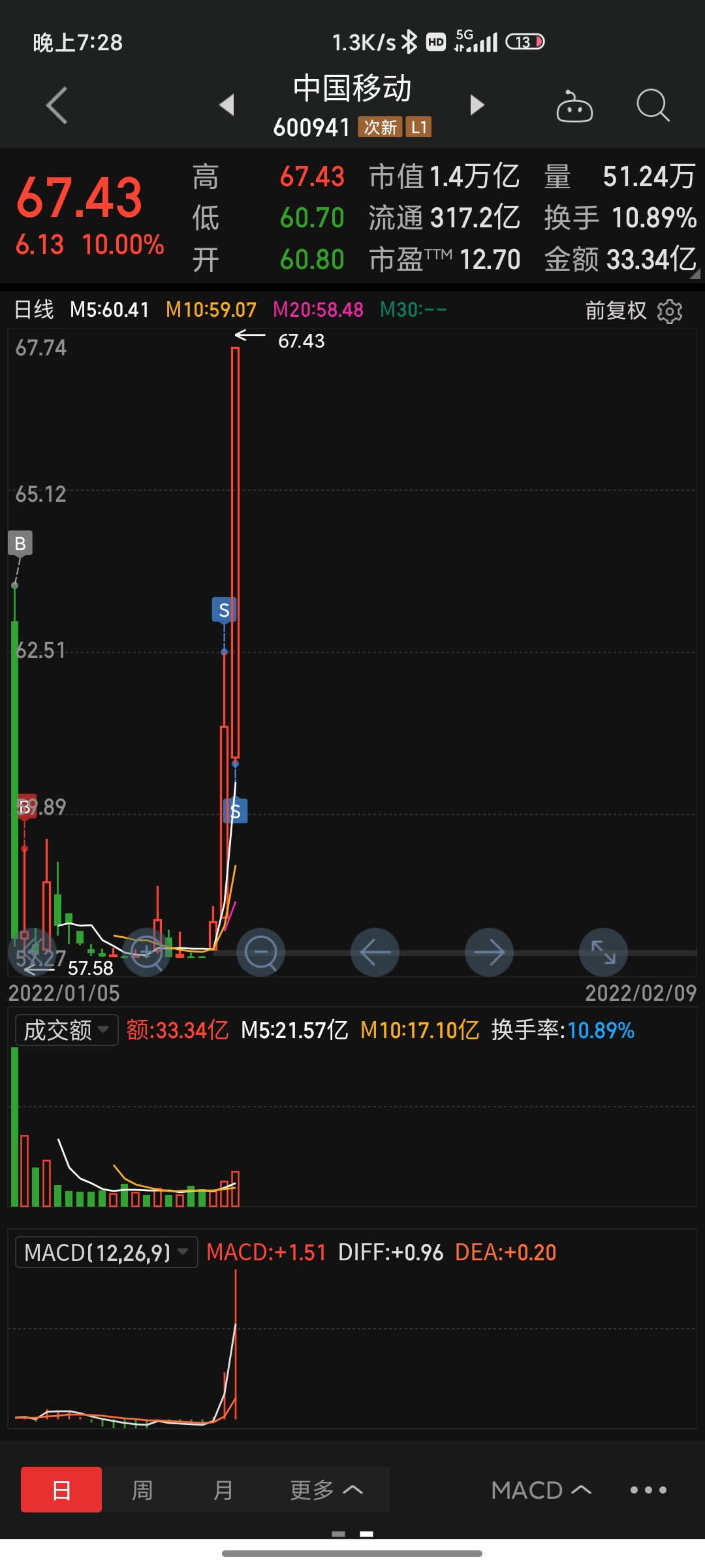 唉,辛辛苦苦几个月,就搞了几个月话费。不过再上几个移动,后面这两根阳线我也吃不到,就不纠结了