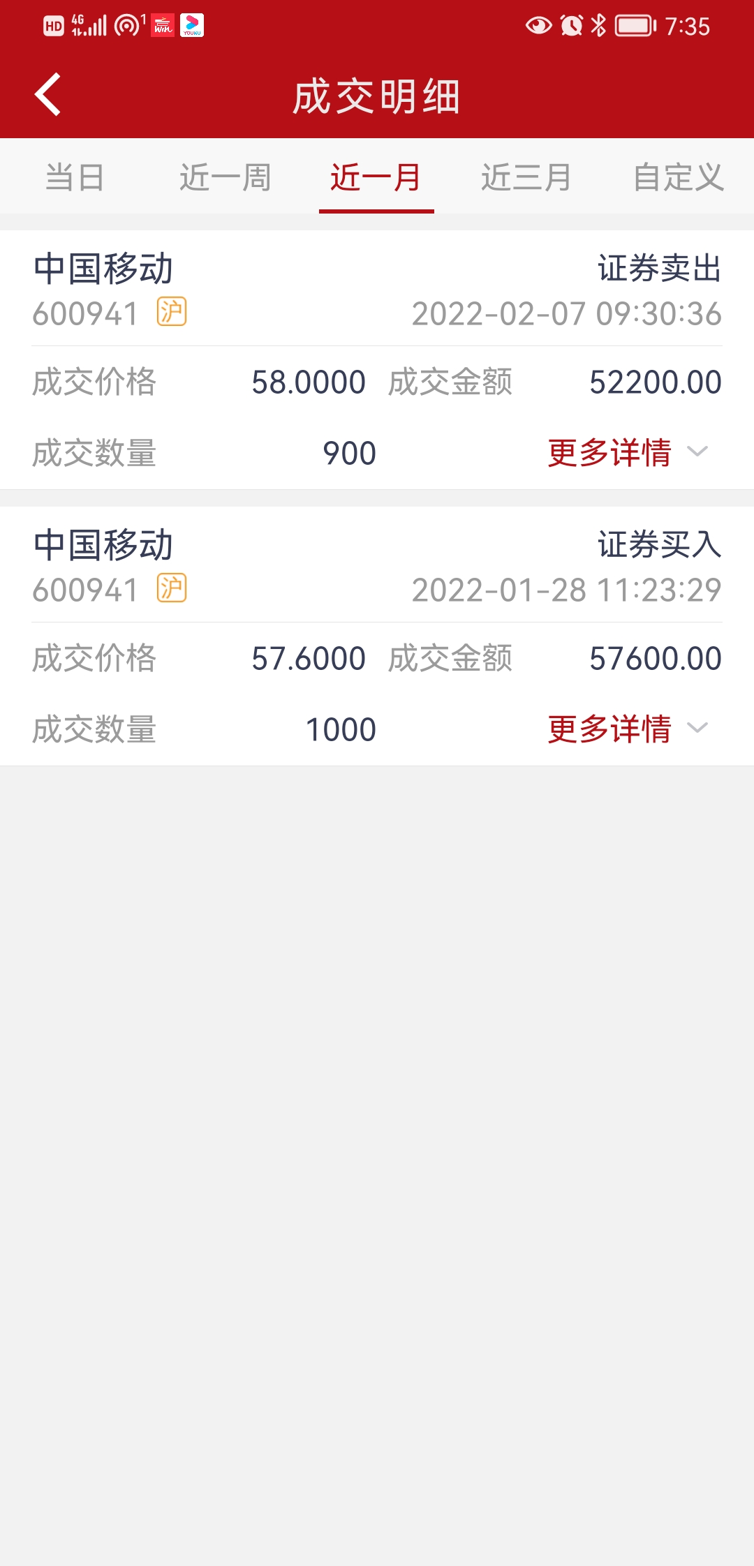 最后一天卖了中移动,换了中国电信,吃到一点小肉