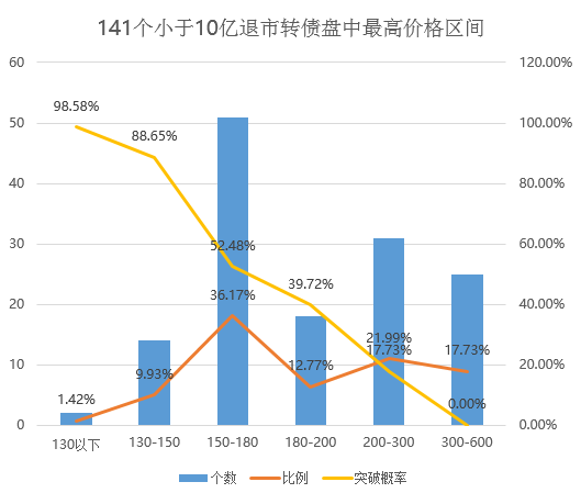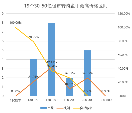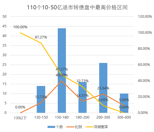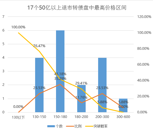 我是根据感觉得出过结论,绝大部分转债最高都能到达160元,但上200的数量断崖式下降,没有统计过数据,第一次看到这么详细的数据分析