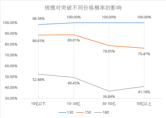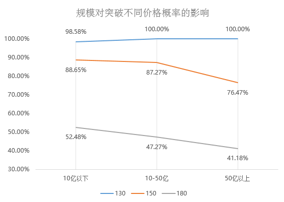 10-50亿也能高概率突破150元,概率几乎没有下降,但突破180元的概率有所下降。