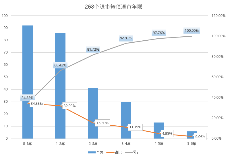 以第4年作为分界线,可以看到,倒数第二年的退市时间分布比较均匀。