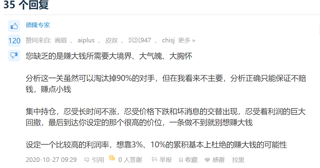 你举得这个例子就不合适...哈哈哈,小朋友,百万assert就是大佬吗?还有,我好像没说过自己是大佬。既然对脱口秀这么有研究,真的应该去其他论坛更适合,这可是集思录啊。对本人不满的话欢迎直接拉黑。好啦,言尽于此,就此封贴。