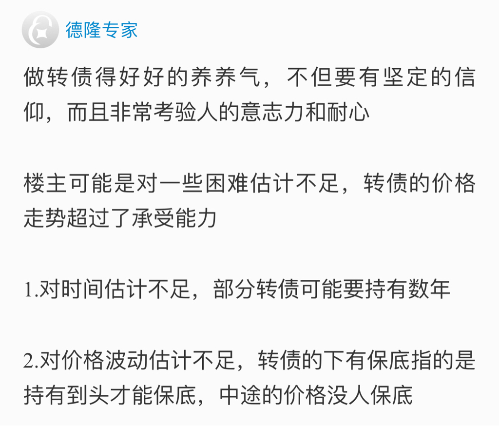 “三知道”原则,仅仅适用于债券类投资深以为然,股比债有更大的不确定性。经营实质发生重大渐变反映在股价上得到的是一个中观上(站在行业角度)风险收益比和原先没变的数字,不管涨跌。股价下行时很反人性,你以为你知道了实际上只是站在当前时点你真知道了,或者你根本不知道。博弈的参数时变,总有一千万种变化能让股价涨到你预期,当然也有一千万种变化更进一步下跌,而涨跌的本质是找到对手方,而你的对手方的收益预期也在时变。债最大的不同就是,你始终有个预期相对稳定的对手方,这让定价变得简单。