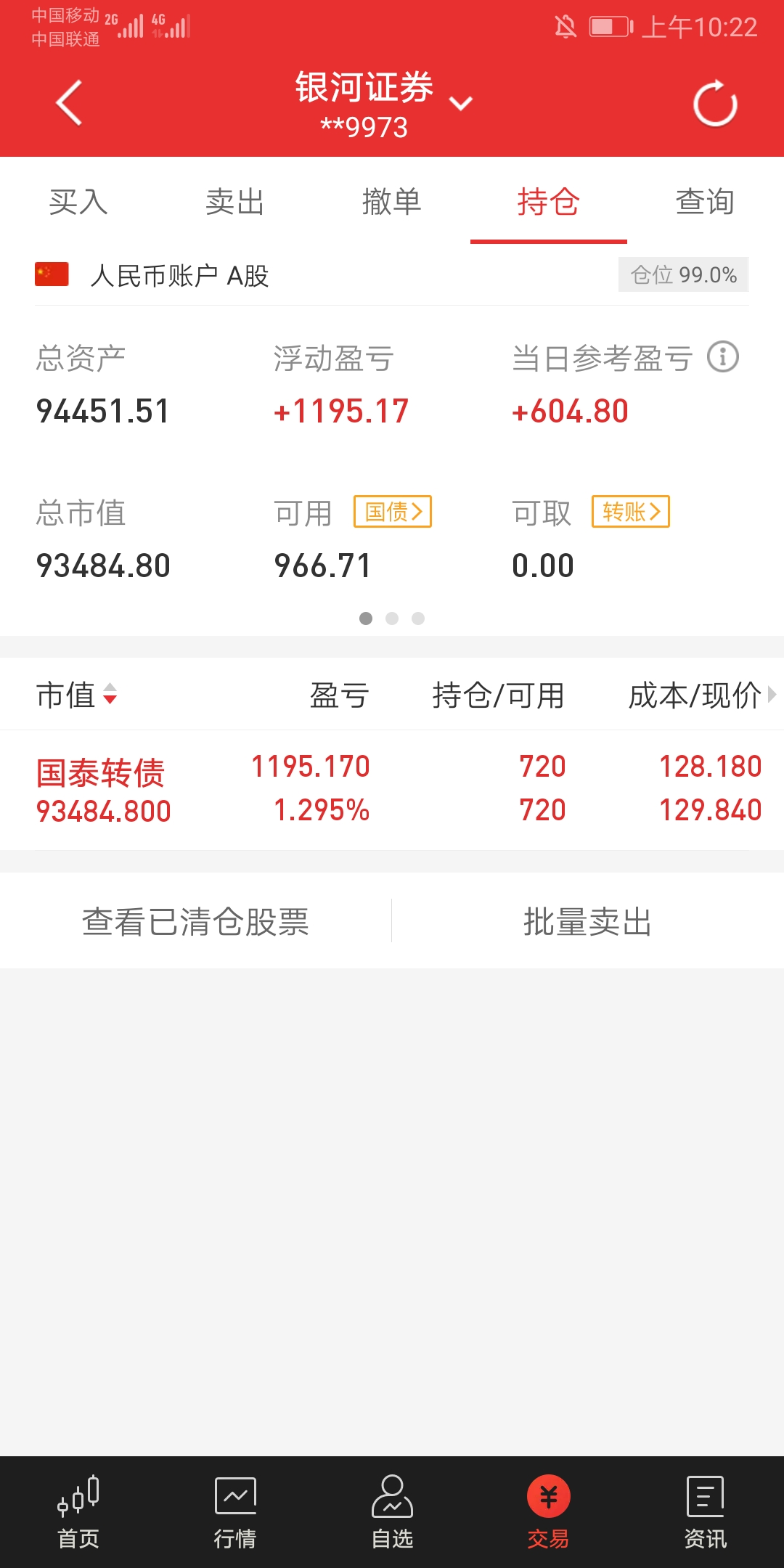 最高盈利的时候考虑过出一部分,降低持仓成本,手中有钱,心中不慌。还有一个卖的理由是孔曼子老师出了一部分。他卖的理由是,国泰转债的关注度太高了。这确实是一个好的理由,可转债是一个相对小众的品种,论坛里面的关注度又比较高,你的底牌被人知道了,有被别人反收割的风险。我还是选择持有,一方面我认为优势在我,另一方面在市场上没找到其他的,我想买的东西,还有一方面是,要上班了,手中有钱也没办法进行日内交易,综上我在盈利的时候一点都没卖。