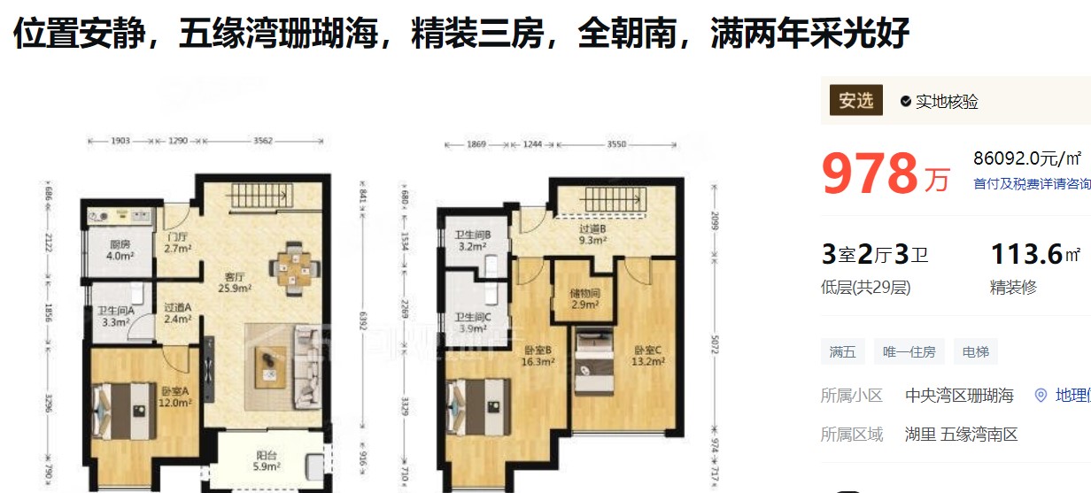 然后我查了一下厦门五缘湾的房价,现在是11万一平了,如果这个房间自己去购买,105平的使用面积大概算上公摊是130平,合下来大概1400万可以买到,算上装修应该要1500万。