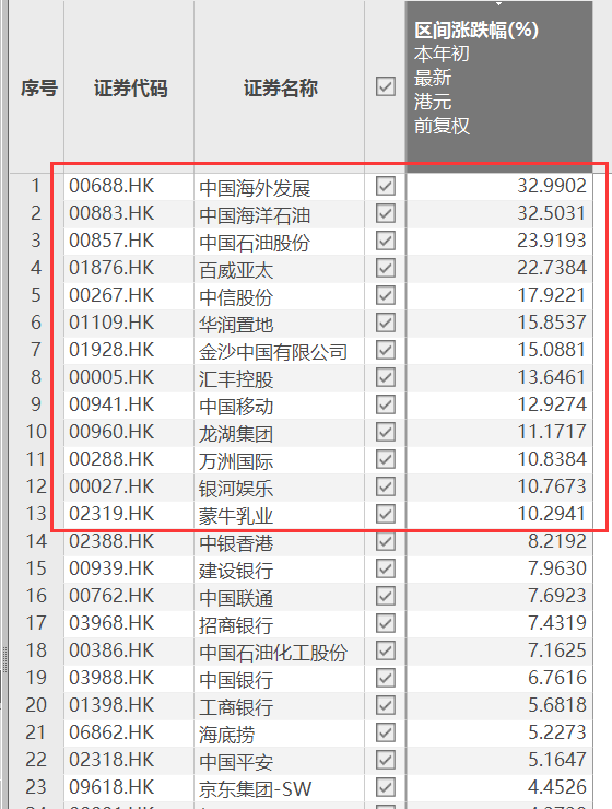 再看看涨幅榜,传统公司今年不少涨幅还不小