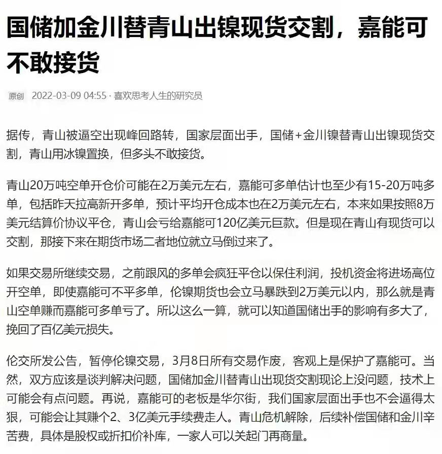 评:如果生产的镍都按卖空的价格出售,不要太爽。