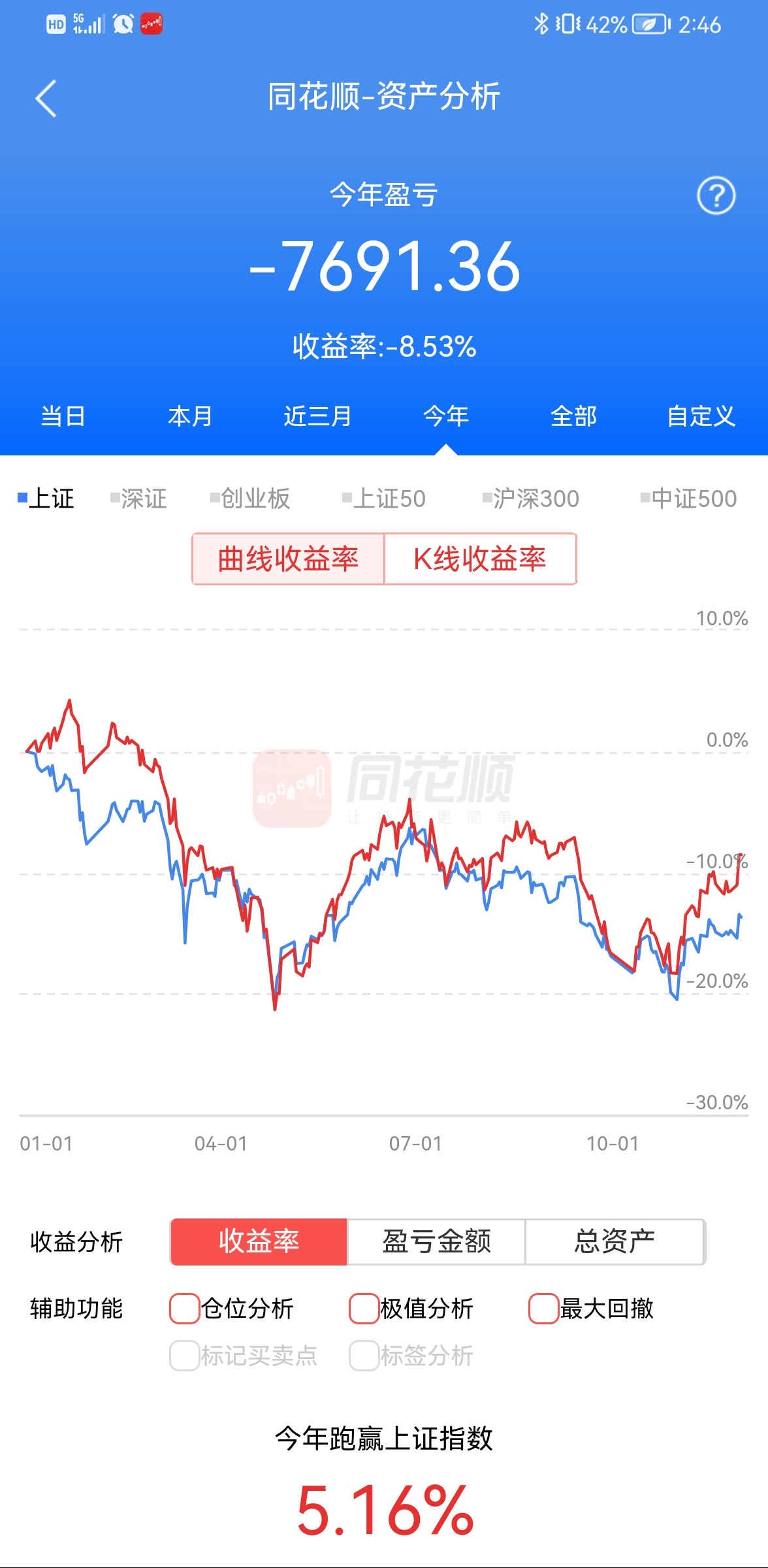 跟股票就告诉自己是来投资的,没有没有关系的,玩多大都没有关系。所以除了14年入场到15年牛市是赢,之后就一塌糊涂年年输。
