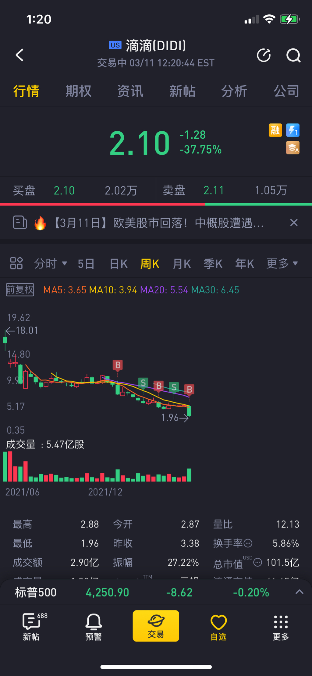 1.当年瑞幸造假事件也影响挺大的也想进,但是最后没进是担心处罚赔偿额度大到破产,结果是涨了10倍。但事后想想,一般有真实市场需求业务的上市公司出问题股价可以跌到估值极地,但几乎没有0的吧,一般是重组退市什么的。所以现在考虑滴滴,重组退市是好事吧?钱也够私有化。