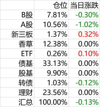 今天的基金净值和股票年报全出来了,简单总结一下