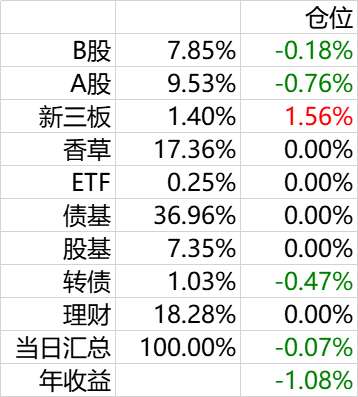 b股过早梭哈,后期老凤祥暴跌是已经没有外汇额度。粤高速基本全加在高位了。整体亏损,不过由于汇率暴跌,摊平了损失。下一步就是等待分红款加仓。