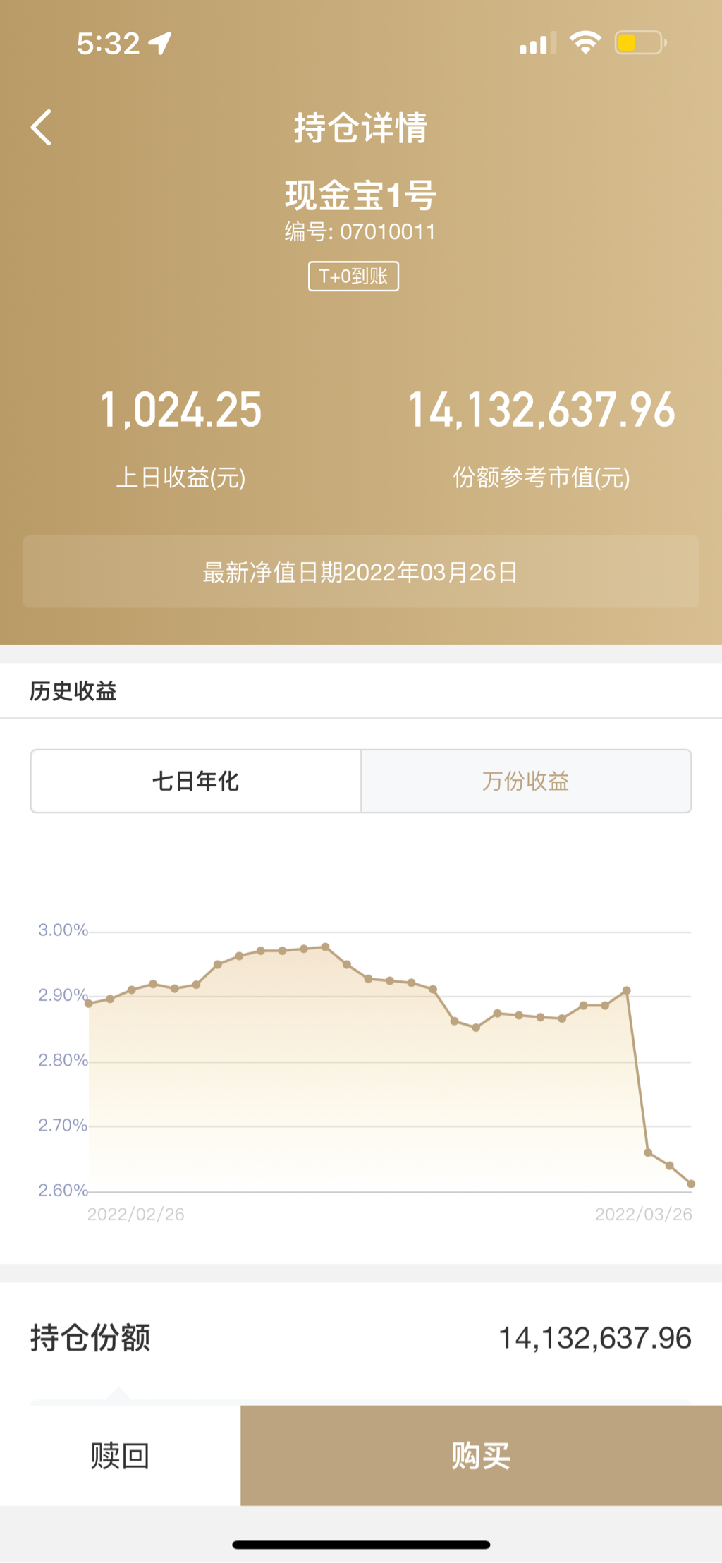 我用零花钱买了点兴业银行现金宝1号,一年就能收这个数了