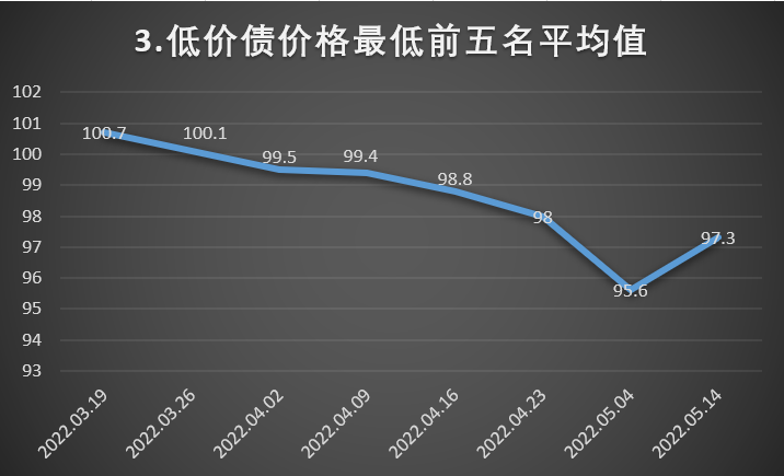 低价小盘债前五名的均值在不断提高,大家再对比下低价债。
