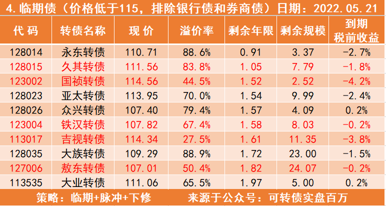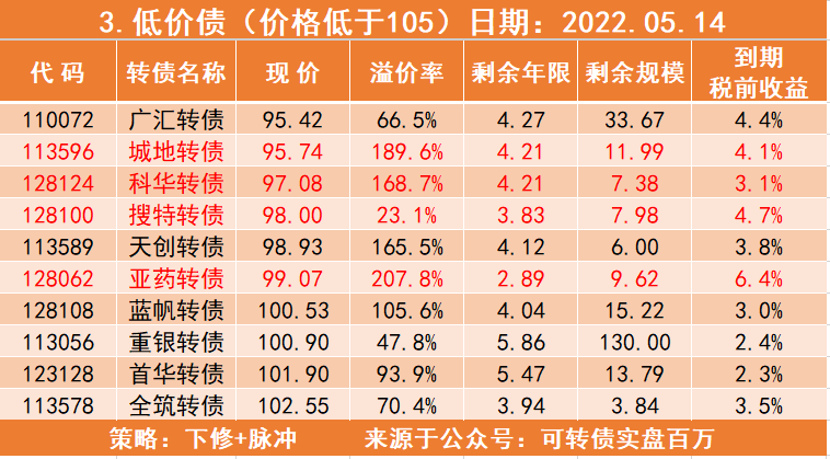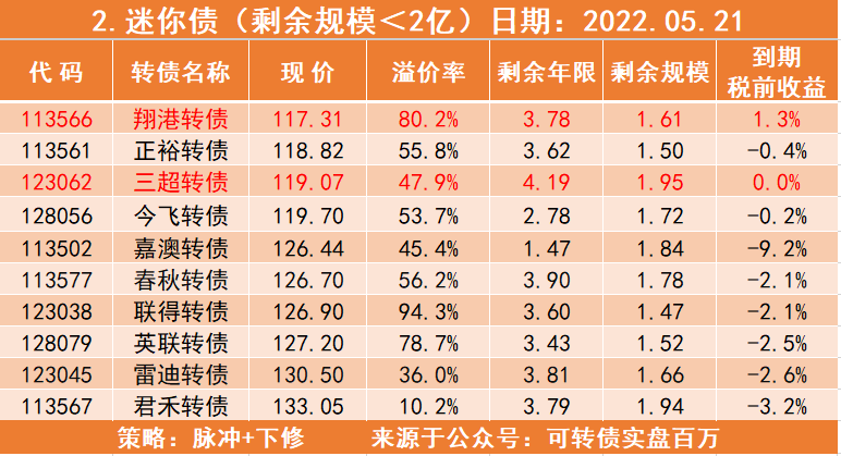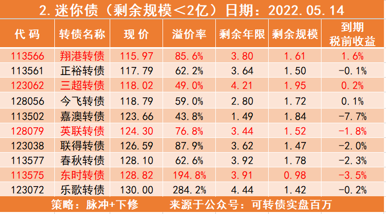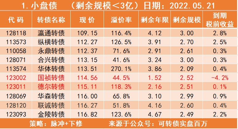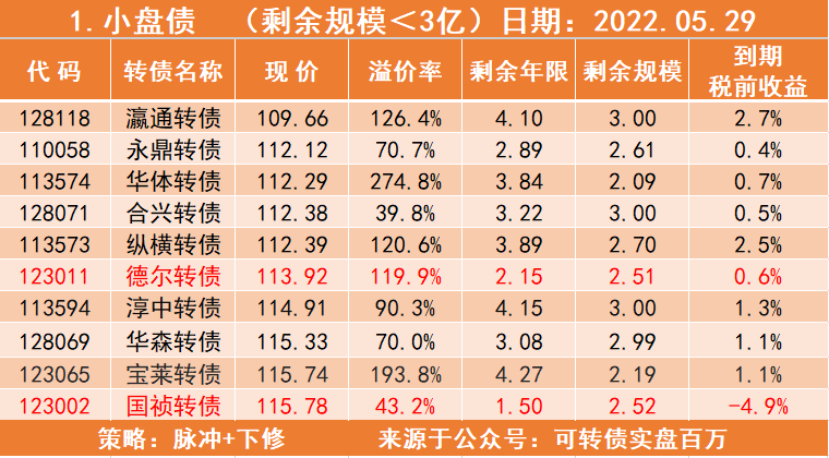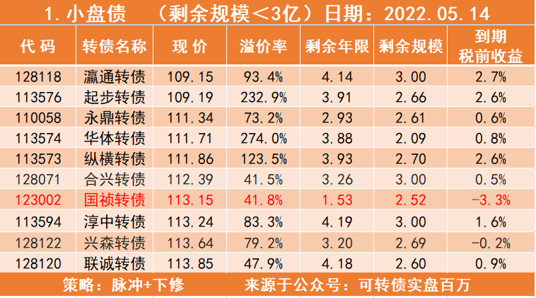 小盘债负责脉冲,低价债负责博下修,临期债负责博强赎。