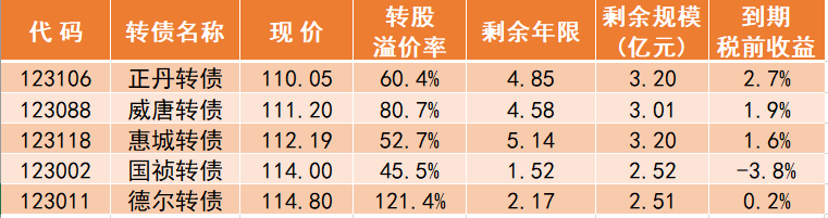 小盘债:正裕转债、东时转债、今飞转债、德尔转债、瀛通转债、锋龙转债、智能转债、乐歌转债、翔港转债