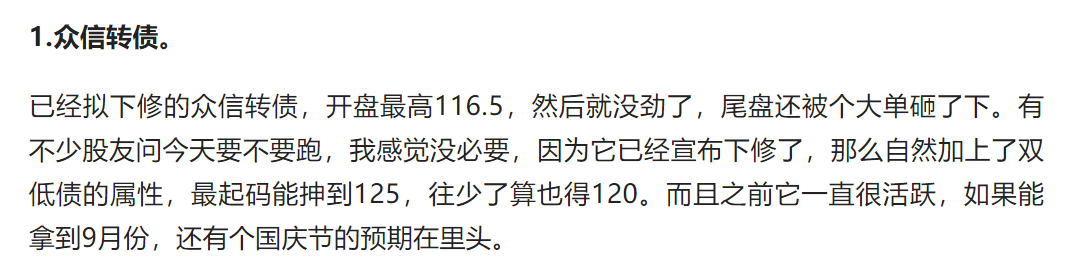 3.众兴转债,不下修的典型。价格较低,账上的钱足够,我准备拿到最后看看公司底牌。