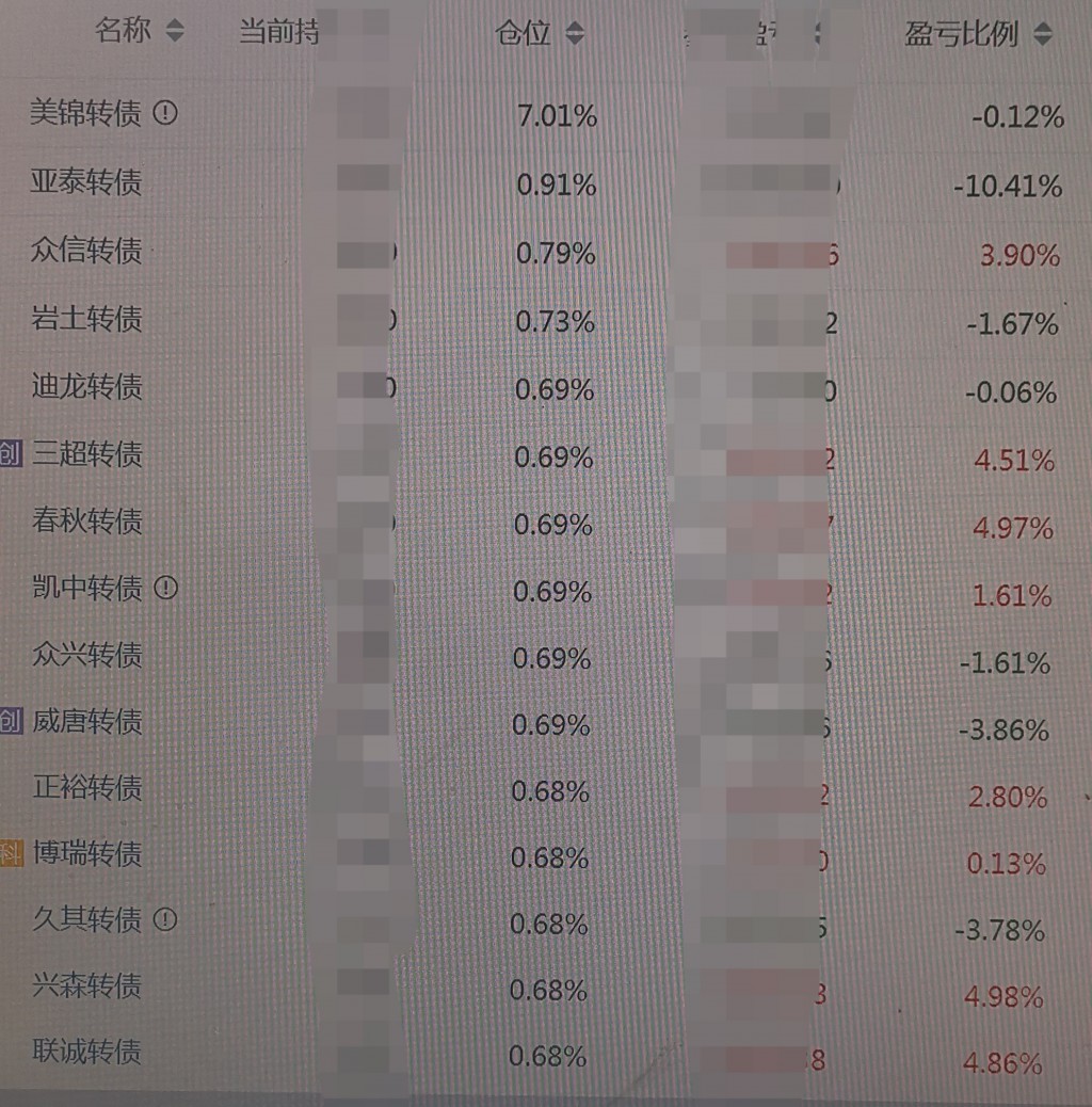 我给大家上个临期债的图。(红色是我实盘持有的,光大转债我摊的是正股)