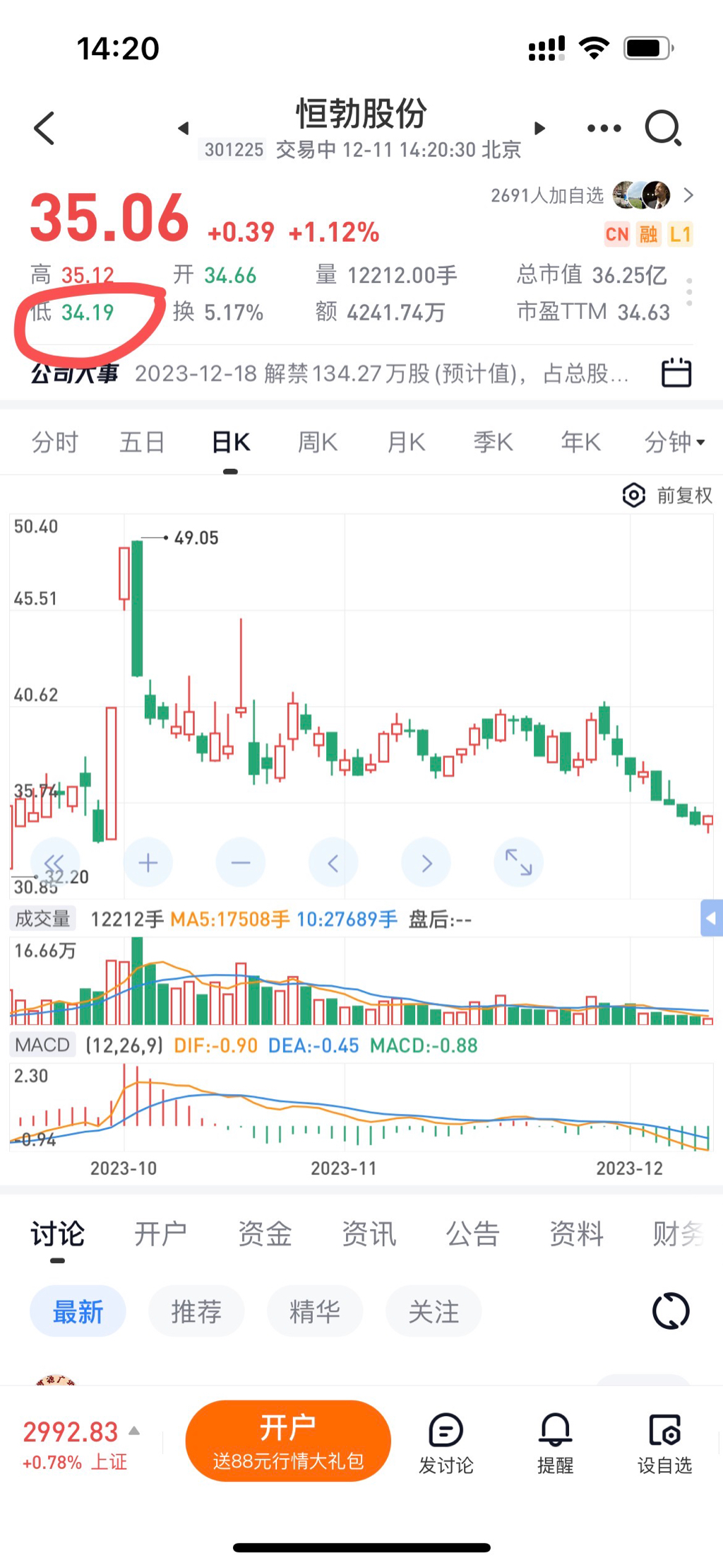 海晨股份目前浮盈中,今日低点加了一笔没有机会t出来,只能等下周了。暂时无忧。海晨这一波我最低看到30附近吧。