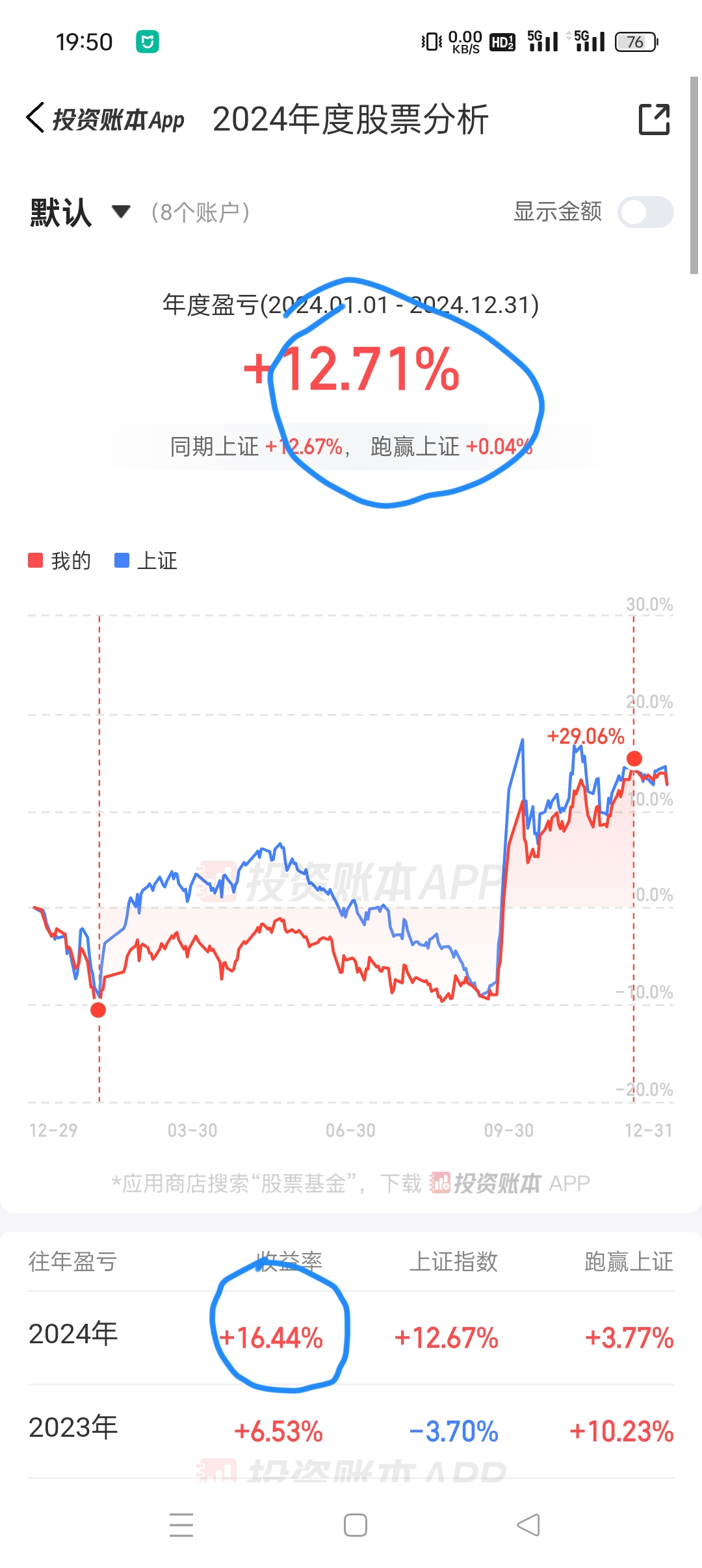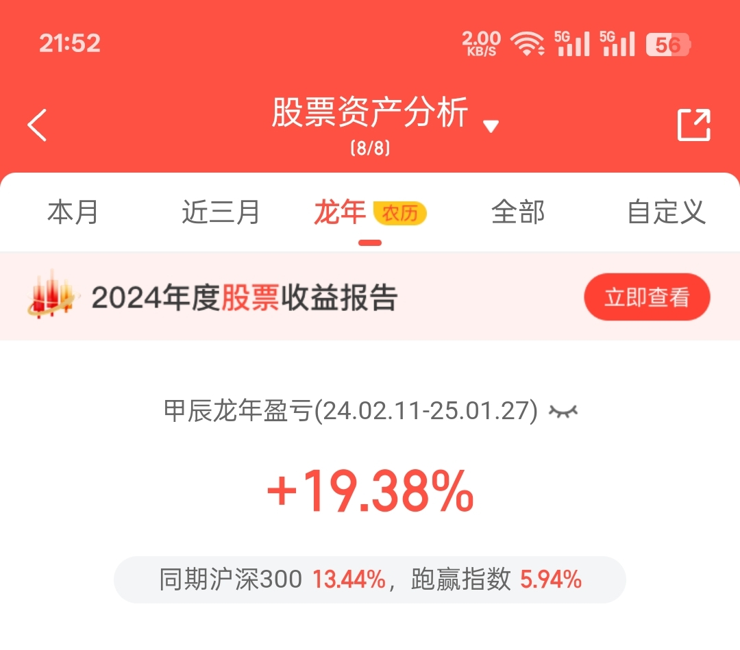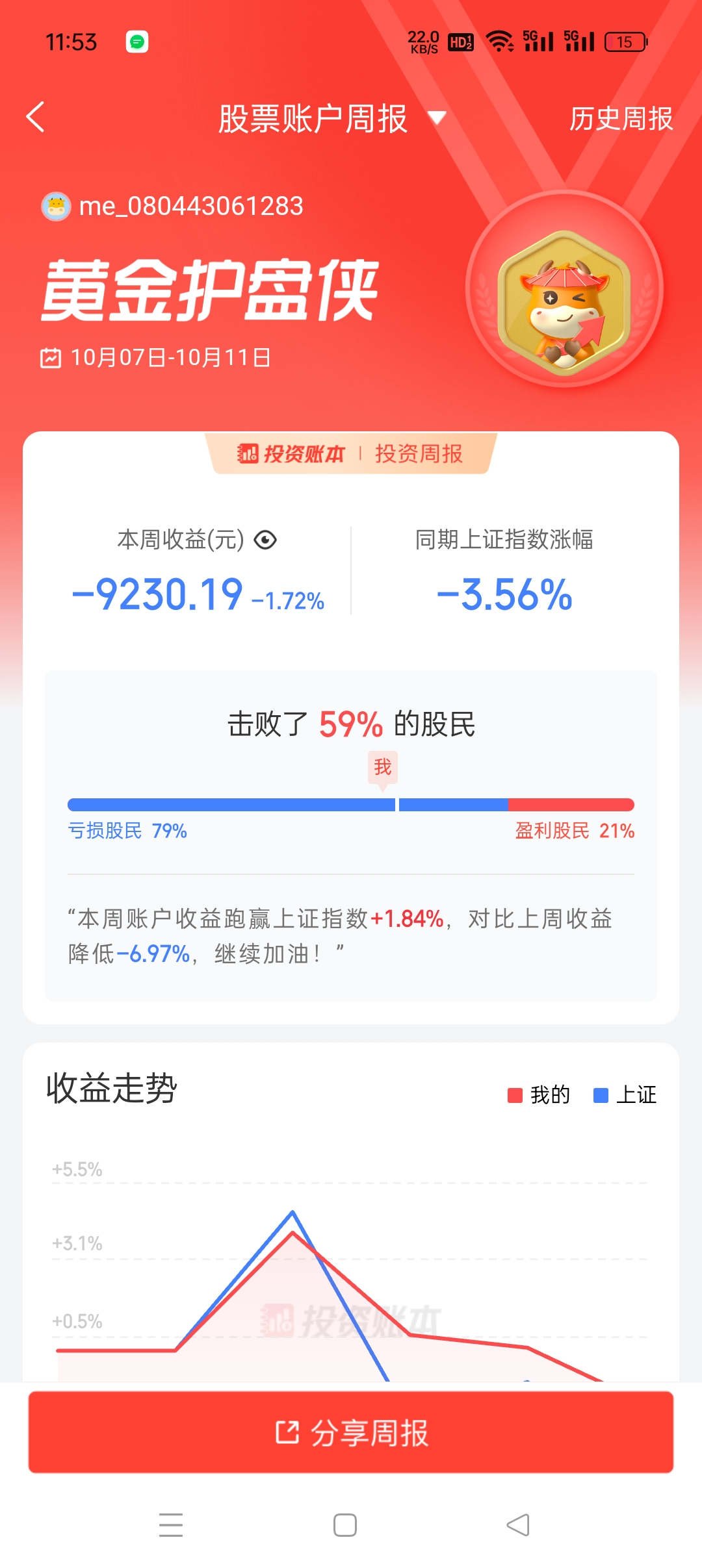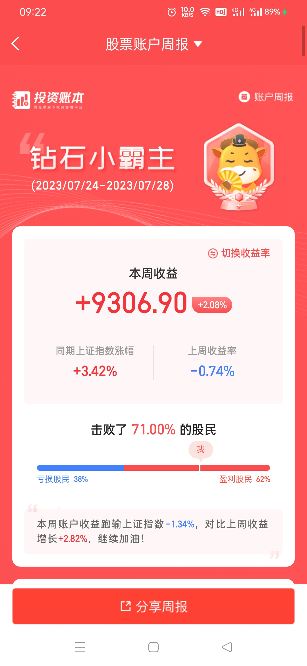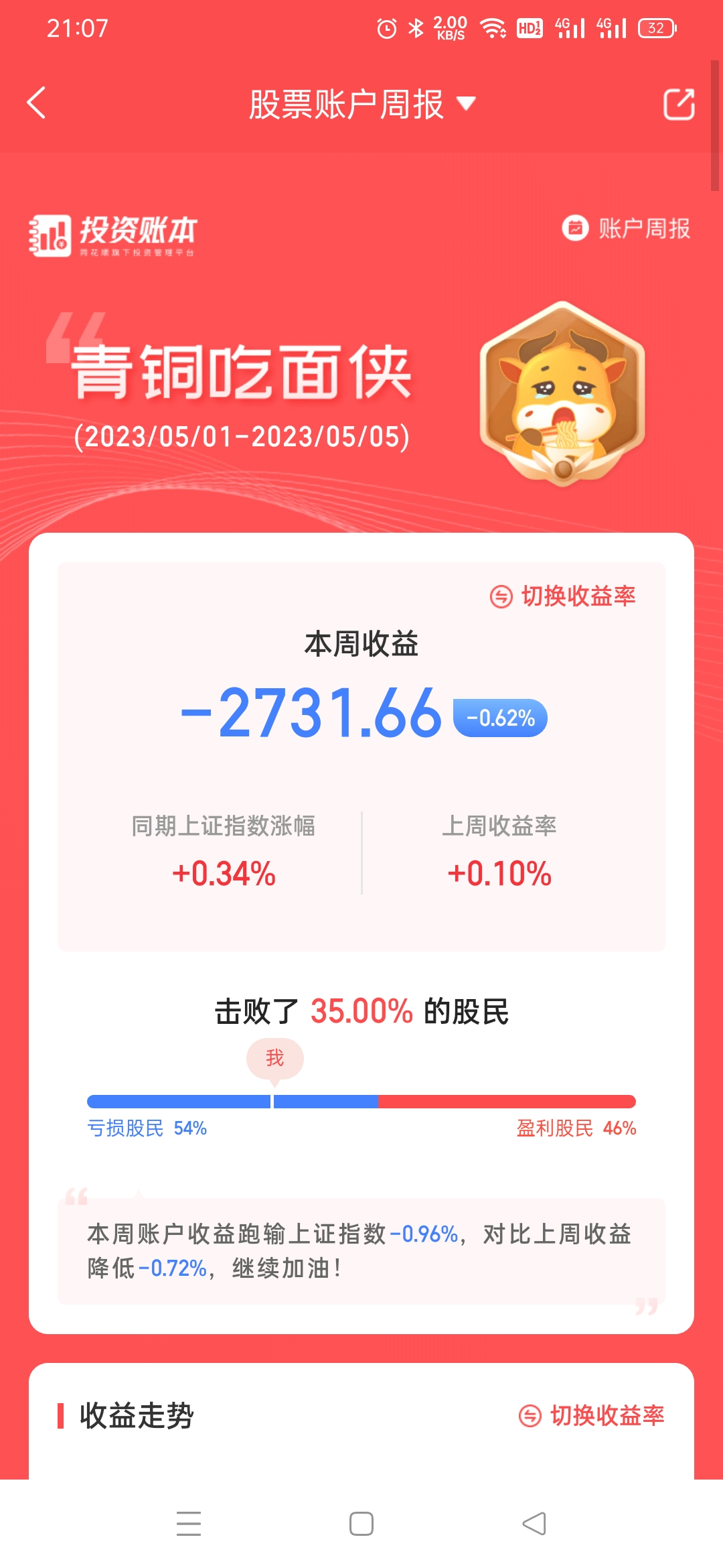 本年2.32%,目前仓位46%,仓位太低这周踏*了不少,没办法,一是熊市思维没改过来,二是腾挪账户开科创,北交所,减了没及时加上去。