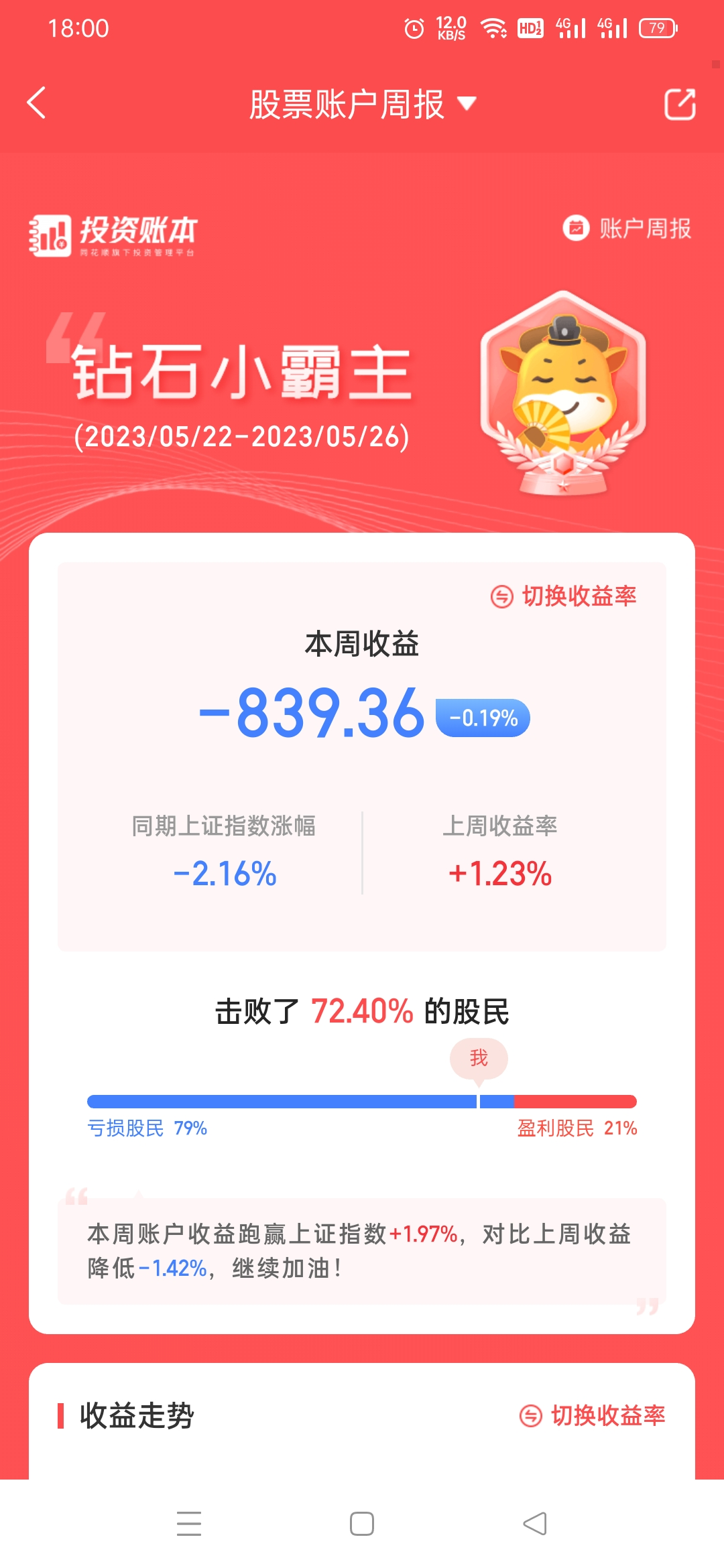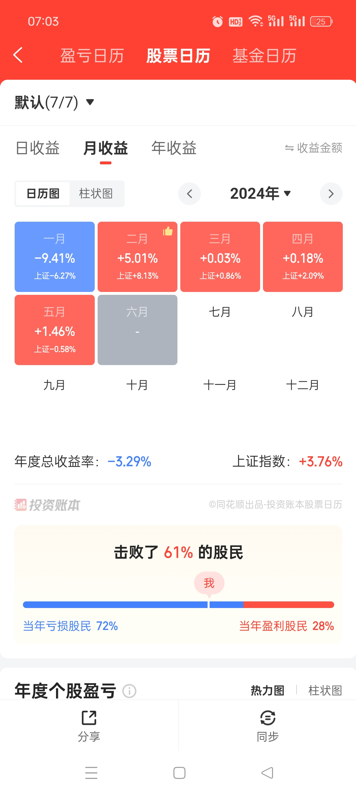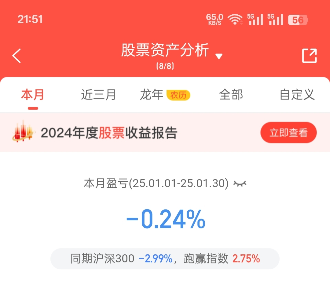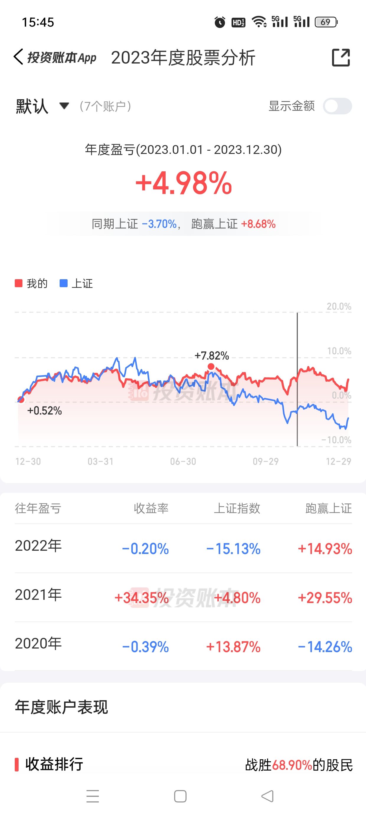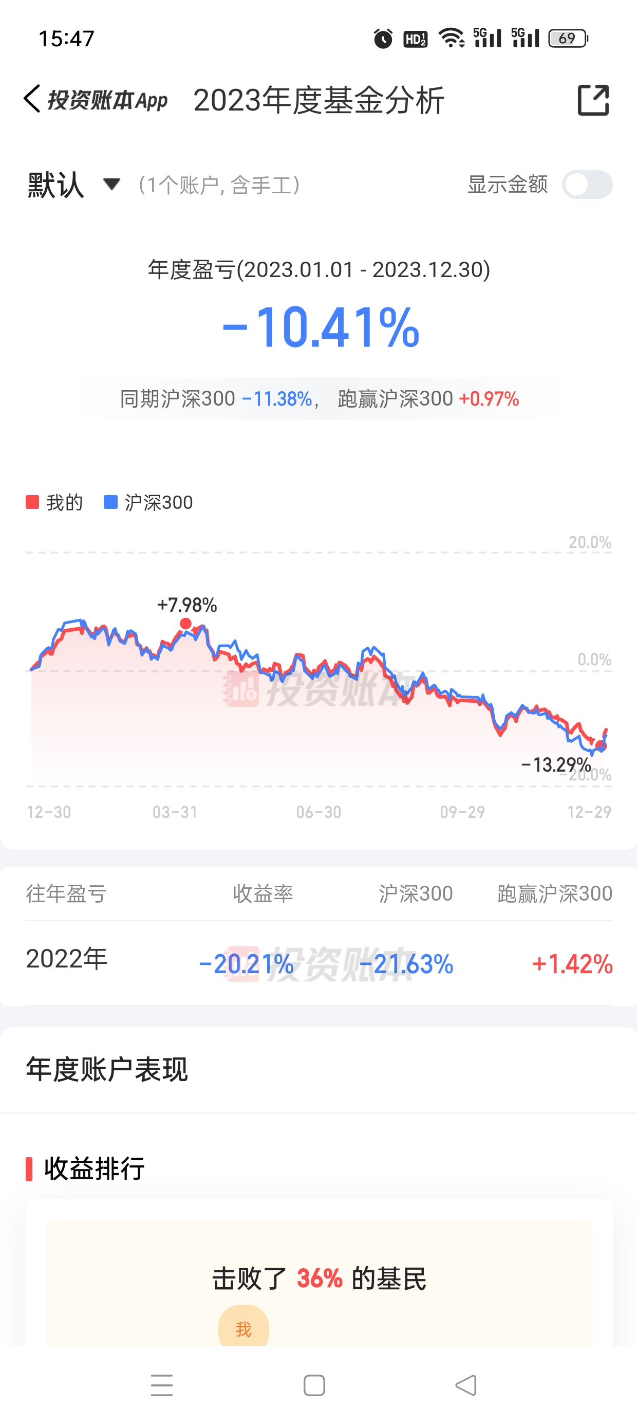 本年2.32%,目前仓位46%,仓位太低这周踏*了不少,没办法,一是熊市思维没改过来,二是腾挪账户开科创,北交所,减了没及时加上去。