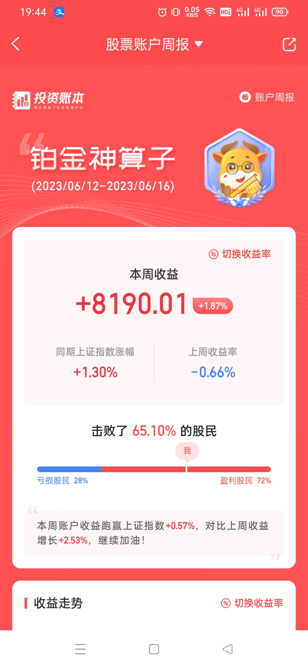 今天历史新高,仓位48.5%,历史盈利19.23万。大A很强,这些仓位暂时不减了,随波逐流吧!