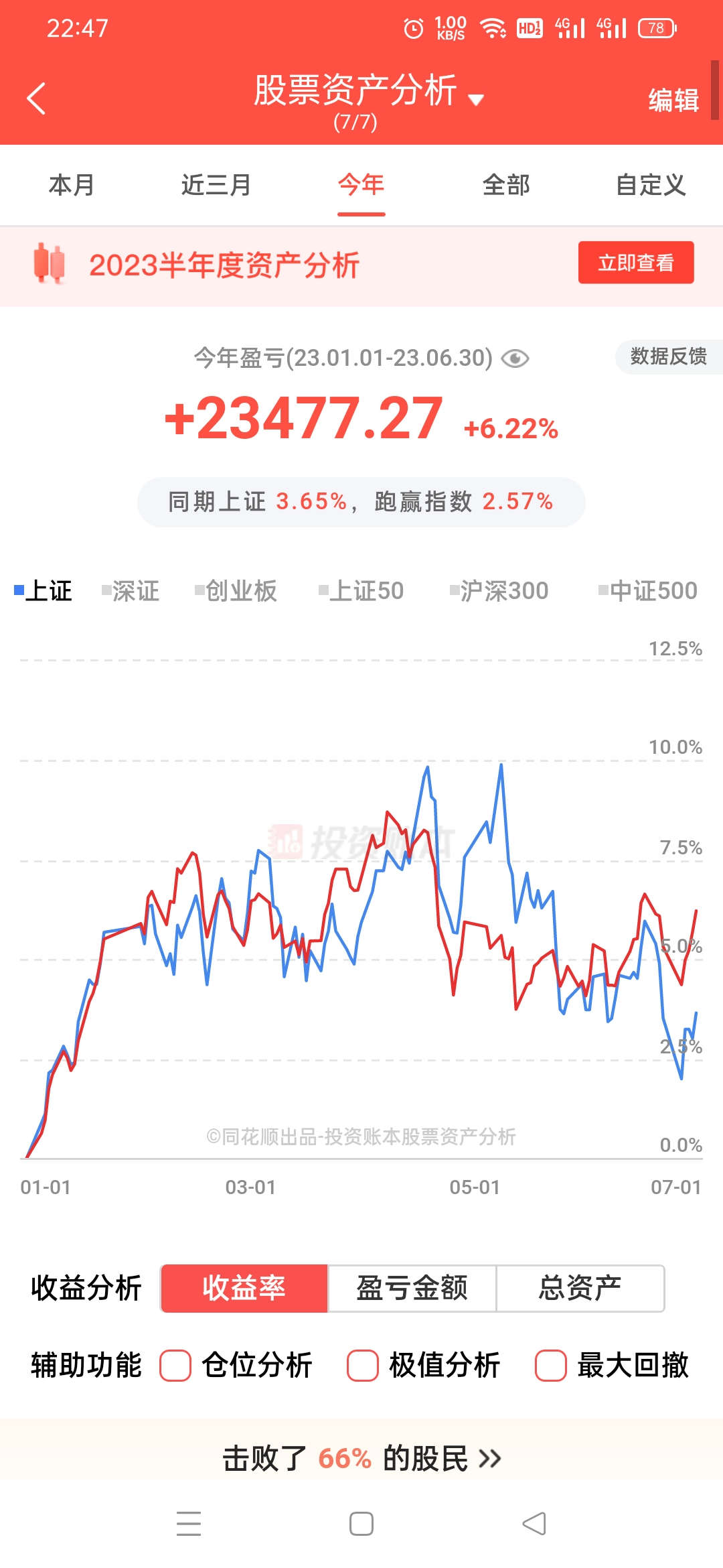 上半年收关,收益6.22%。目前仓位78%,总体上还算满意。记录下几点感悟: