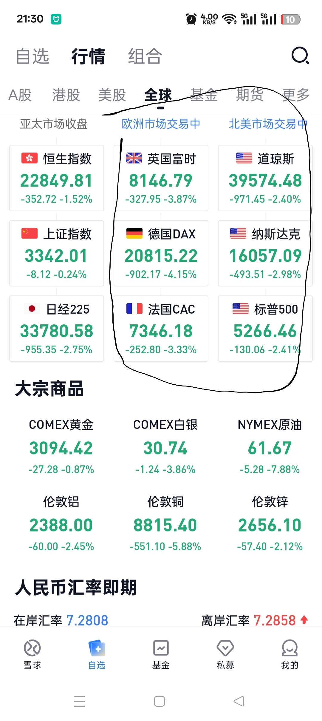 记录一下,欧美股市在特朗普关税大棒的威力下跌成这副样子,有点疫情开始时的那种恐慌状态了。