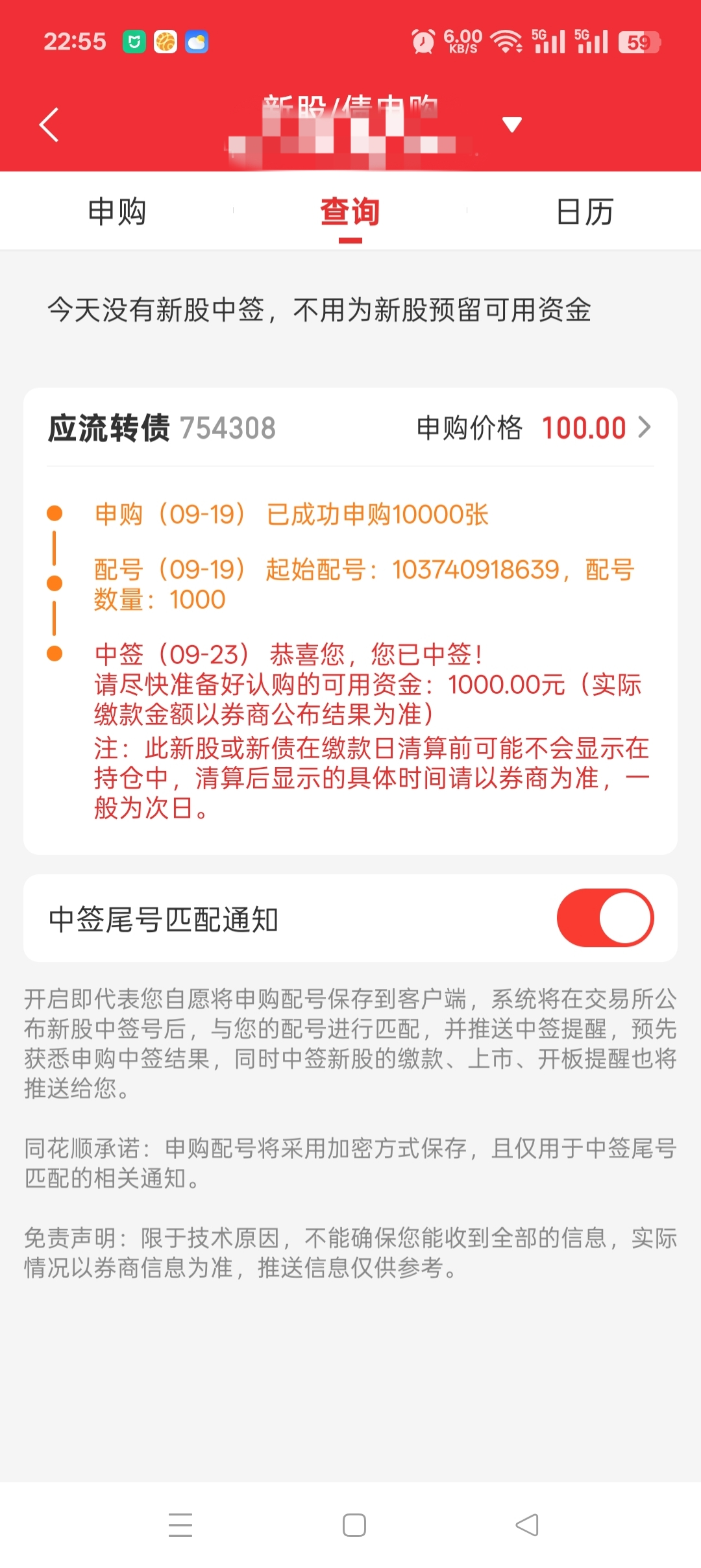 附:中一签立中转债(预计收益250),燃23那么高的中签率却零蛋。