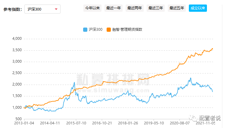 像国内做私募CTA产品的,自2013年以来的曲线和沪深300的对比如下:
