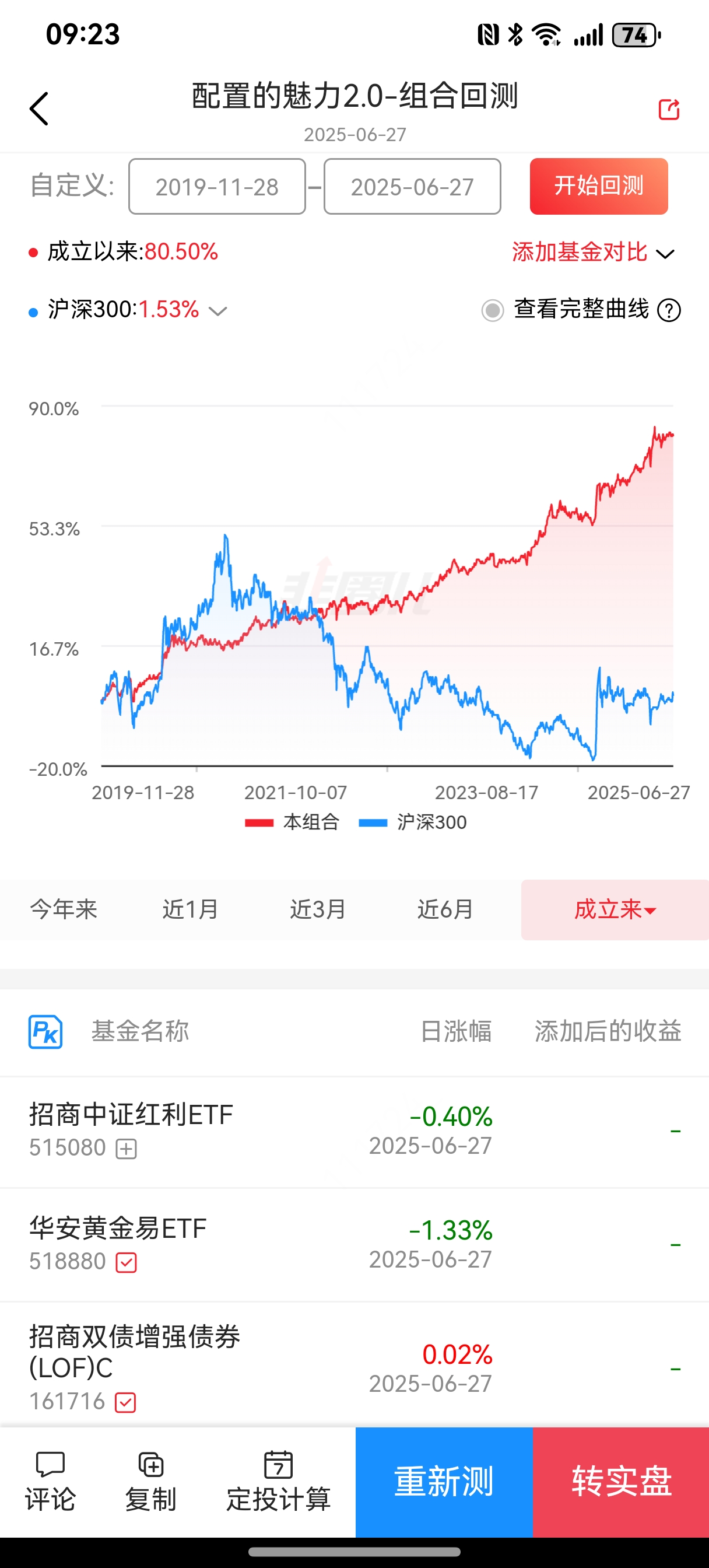 创业板指数基金、科创板综合指数基金、人工智能基金和机器人基金,这些靓仔都没有,但都曾经较重仓位持有过,创业板2.2的成本,被干到1.8以下,其他基金相对就没那么极端,当回本后就急忙抛出啦,长出一口气暗自庆幸。从抛出开始就不断上涨,现在已经涨了30%啦。不得不佩服市场,目标就是要搞大创业科创那些新赛道,好多人应该也这么想,但是时机选择出其不意,让一些不坚定的投资者在震荡中丧失了革命理想提前下车。还是策略靠谱,没有人的朝三暮四朝令夕改的毛病,表现较好,虽然最近因为牛气十足略有跑输,但今年还是大幅超越指数的。