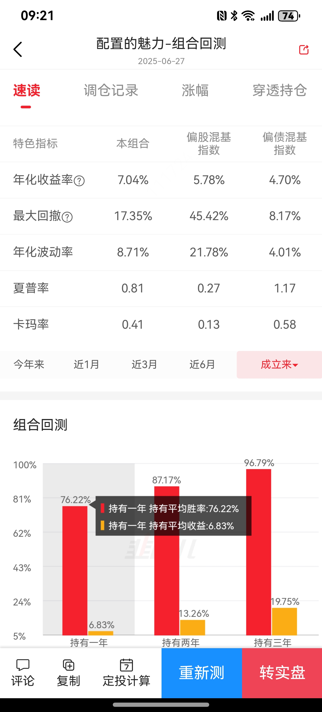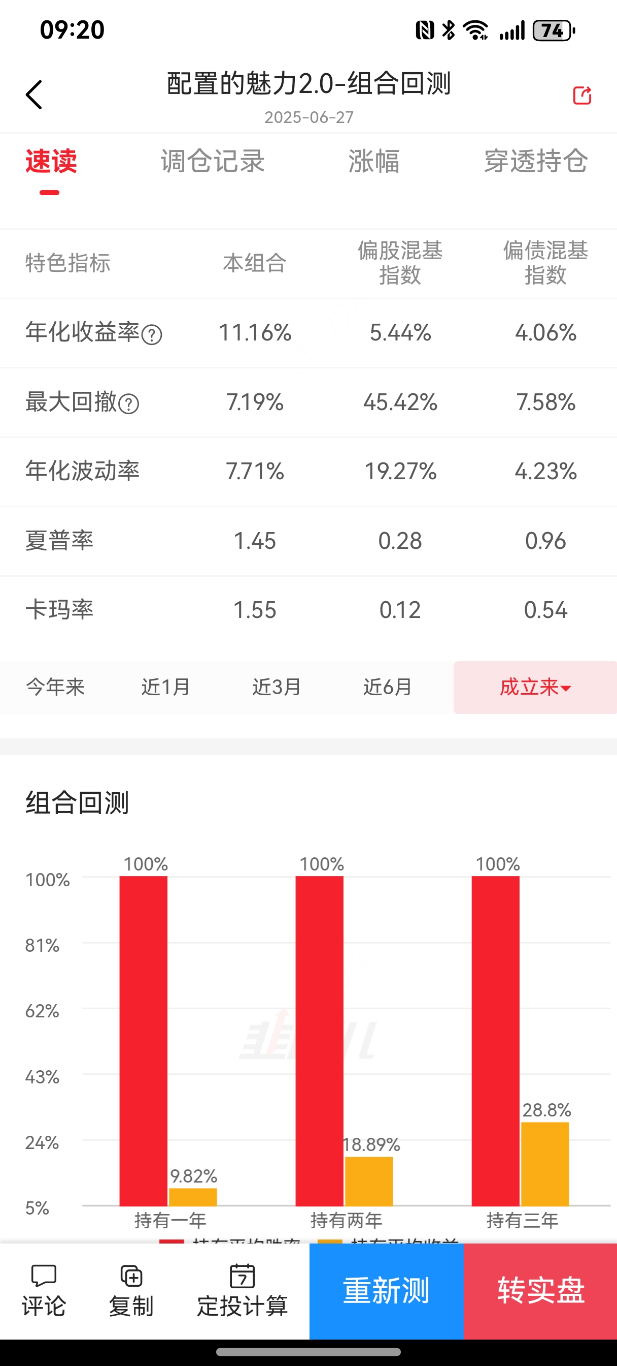 回撤时跌8.5%,上涨时16.%,正收益时负收益的一倍。这种配置方式,既能在市场低迷时守住底线,又能在市场繁荣时抓住机遇,堪称投资组合的“平衡术”。