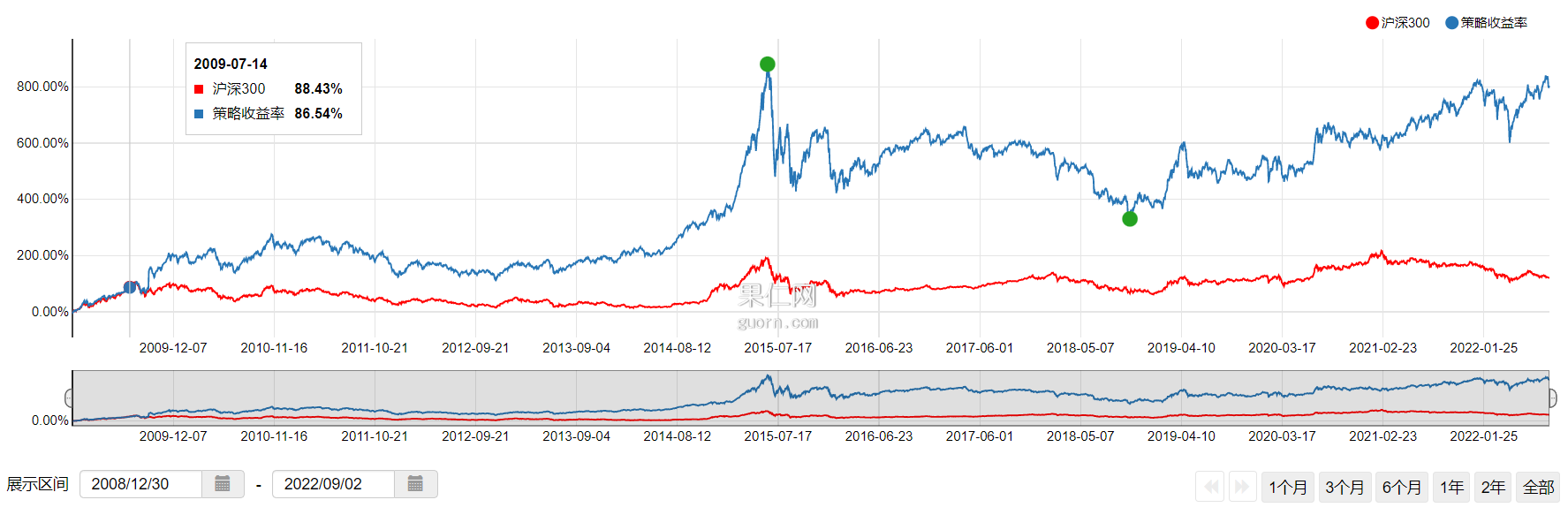 大小策略组合后年化20% ,最大回撤24%,还是挺理想的。
