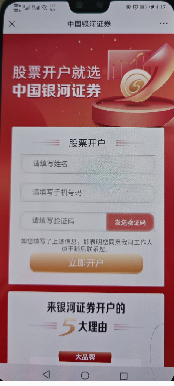 用微信的“扫一扫”功能扫描下面的二维码,安装“中国银河证券”APP,按提示逐步完成开户,7*24小时均可操作,节假日无休。我们只能识别到扫码开户的客户,开户环节请不要自行发挥。其他常用信息: